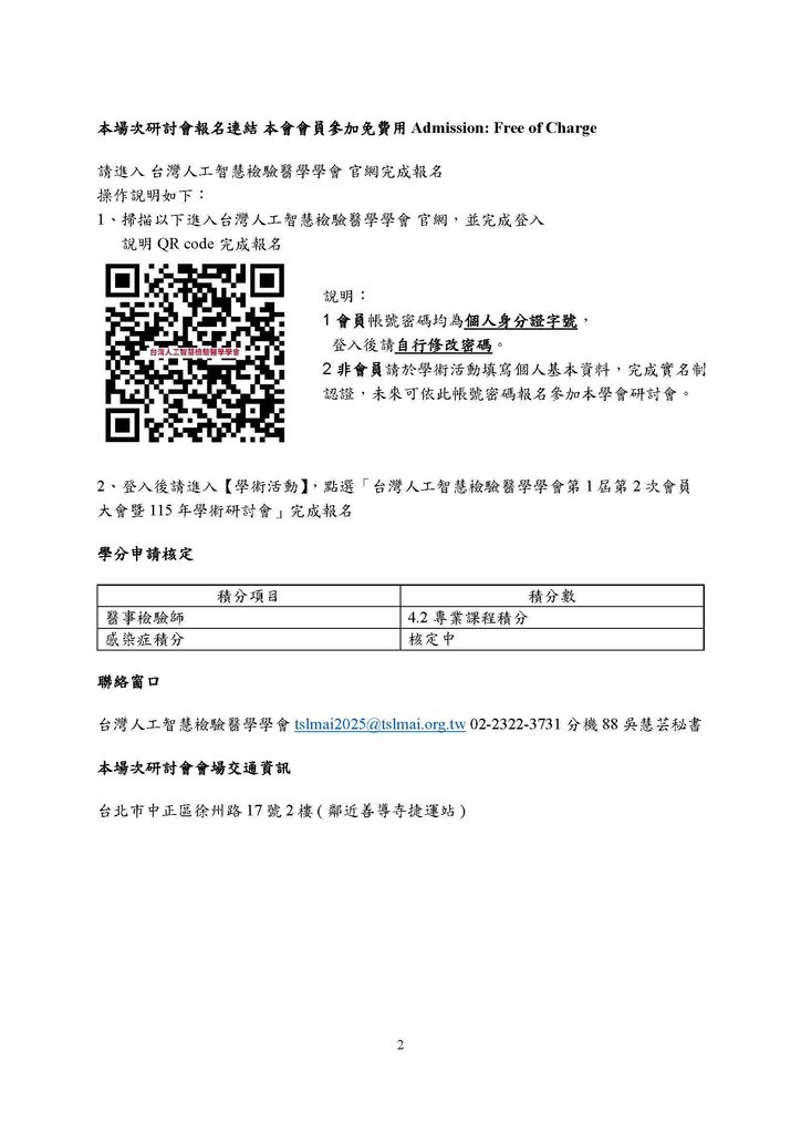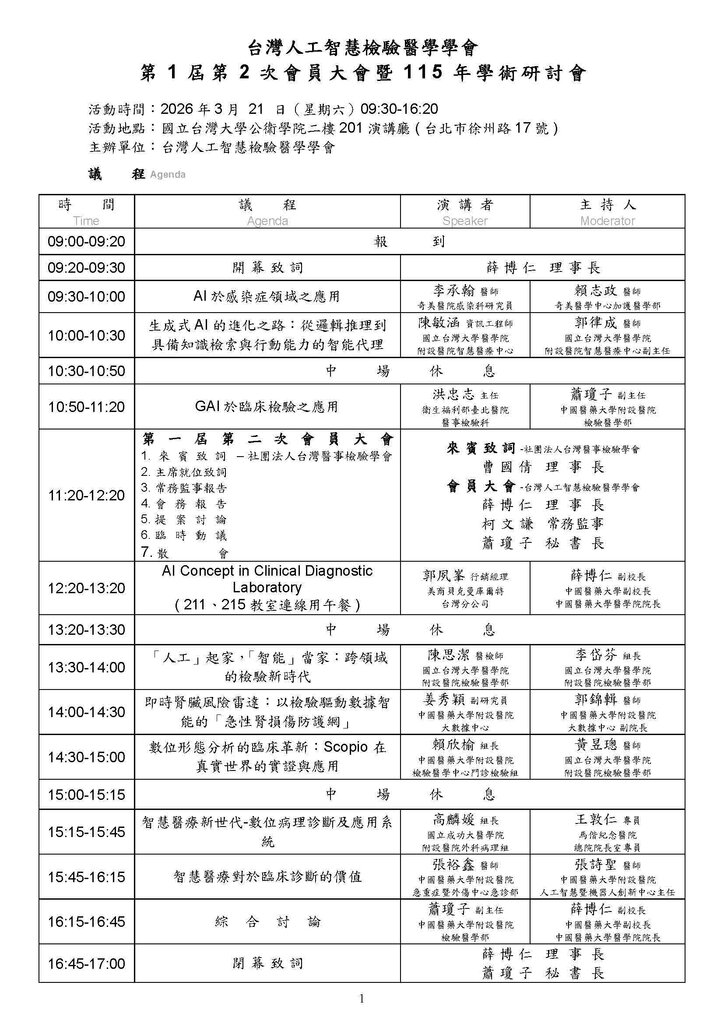 台灣人工智慧檢驗醫學學會 第1屆第2次會員大會暨115年學術研討會